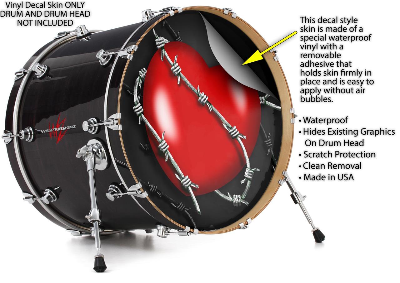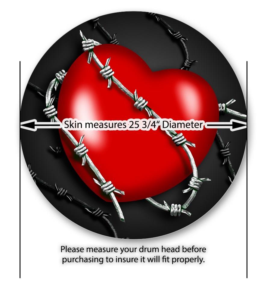 Decal Skin works with most 26" Bass Kick Drum Heads Barbwire Heart Red - DRUM HEAD NOT INCLUDED