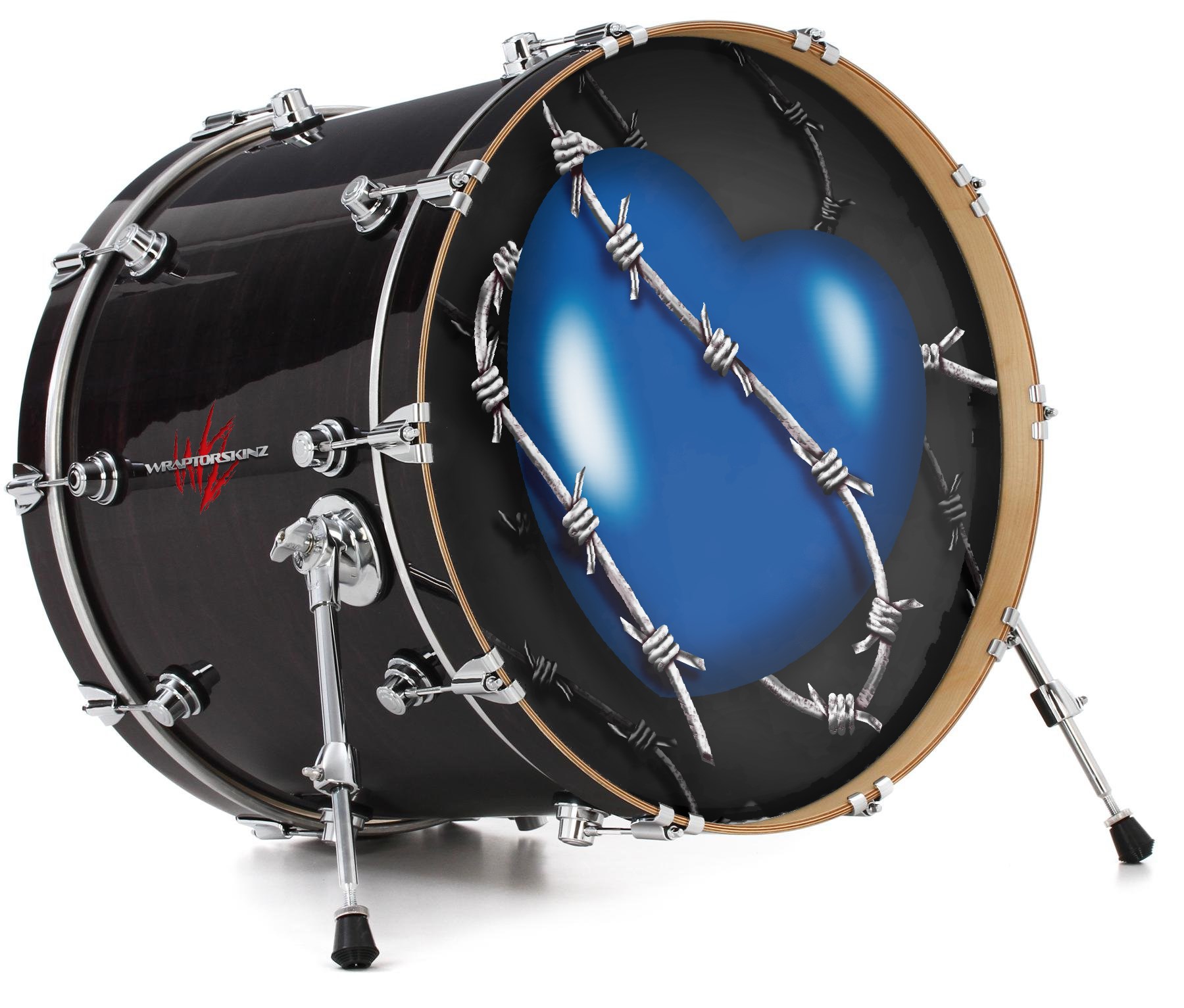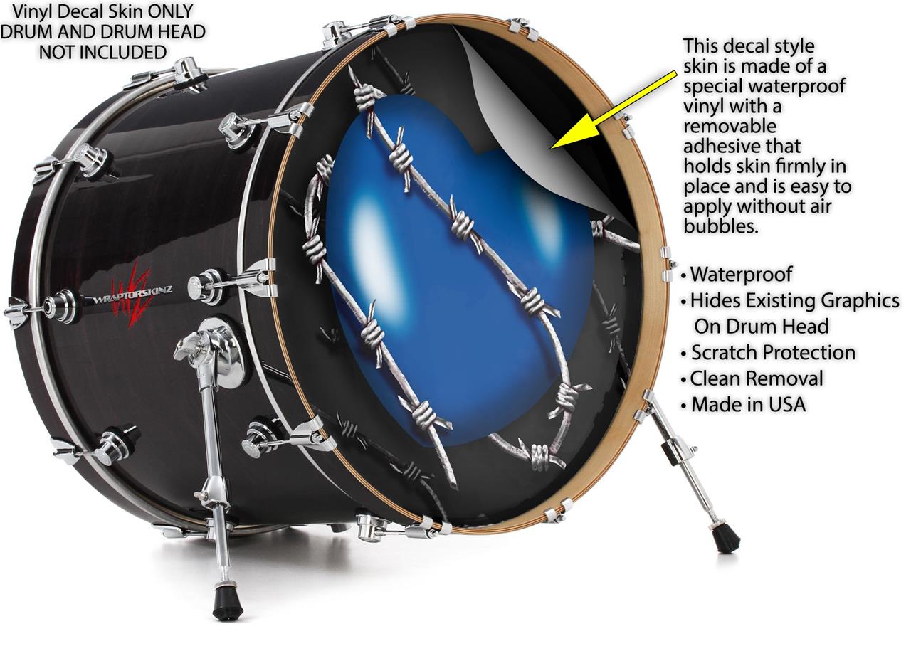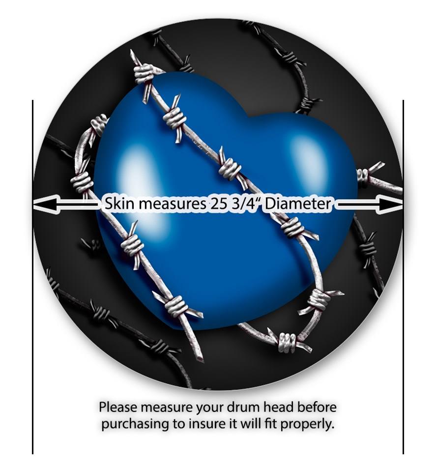 Decal Skin works with most 26" Bass Kick Drum Heads Barbwire Heart Blue - DRUM HEAD NOT INCLUDED