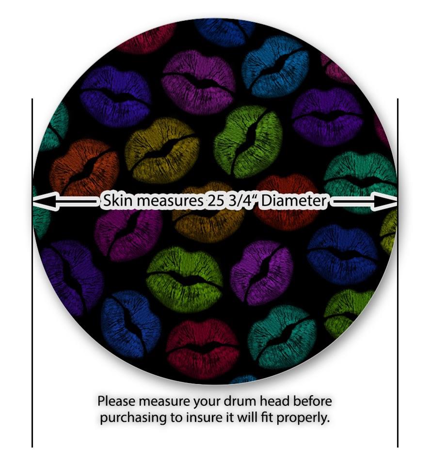 Decal Skin works with most 26" Bass Kick Drum Heads Rainbow Lips Black - DRUM HEAD NOT INCLUDED