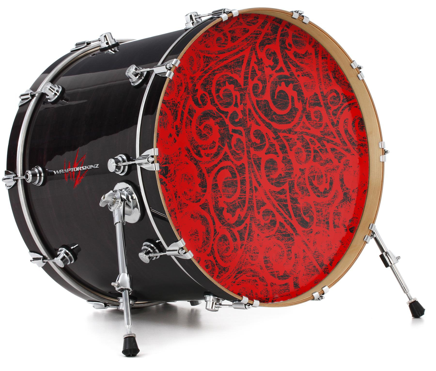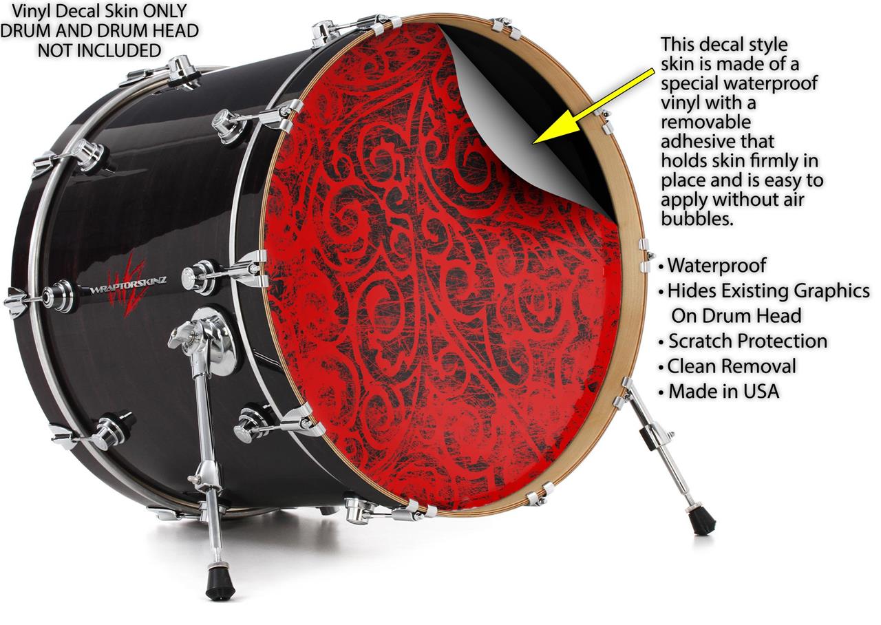 Decal Skin works with most 26" Bass Kick Drum Heads Folder Doodles Red - DRUM HEAD NOT INCLUDED