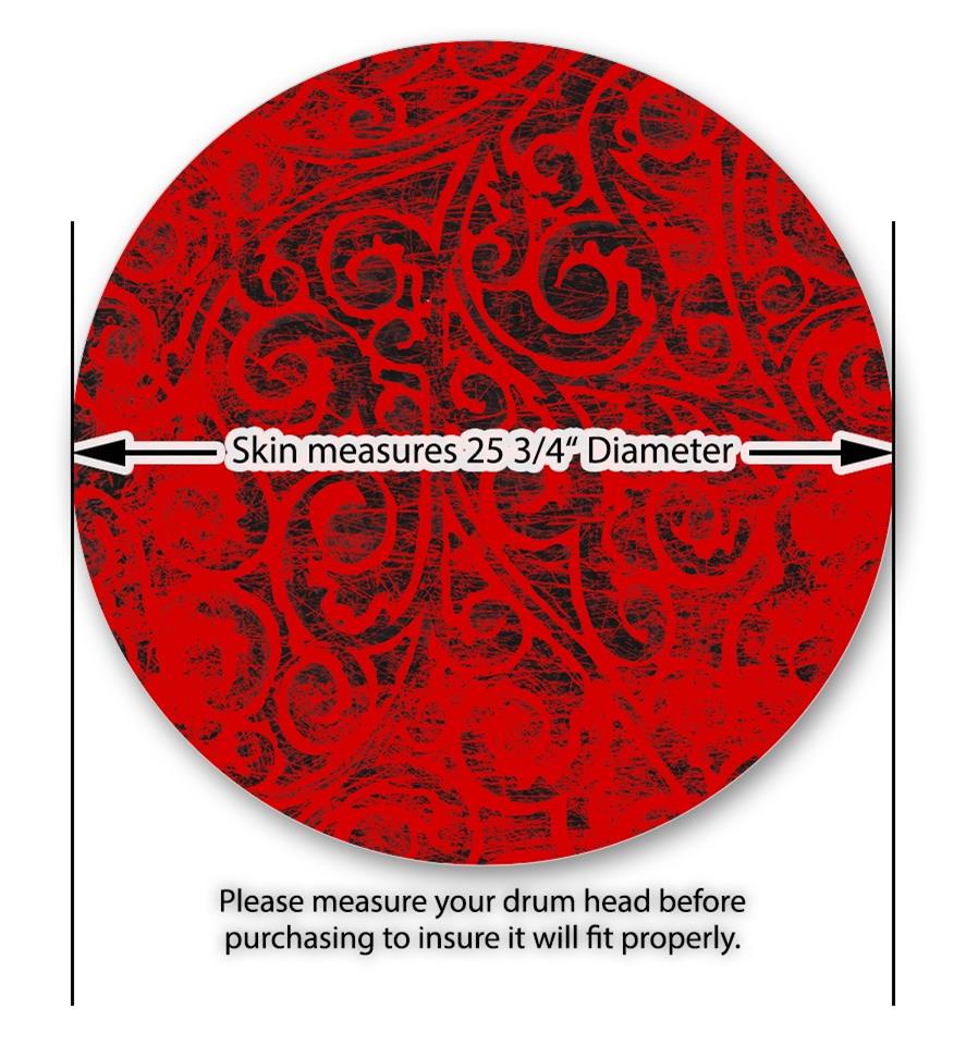 This design also available in other sizes. WraptorSkinz® skin wraps compatible with most kick drum heads. Printed using superb photo quality designs and vibrant colors printed with special fade resistant inks that last even in direct sun for years. WraptorSkinz are a composite three layer commercial grade materials vinyl. The bottom layer is a air release, grey block out removable adhesive that hides existing graphics on the drum head and is easily applied without air bubbles. The middle layer is a flexible vinyl printed with UV protected, fade resistant inks that deliver superb photo quality designs in vibrant colors. Finally, we bond a professional grade laminate over the entire skin adding a glossy protective finish.