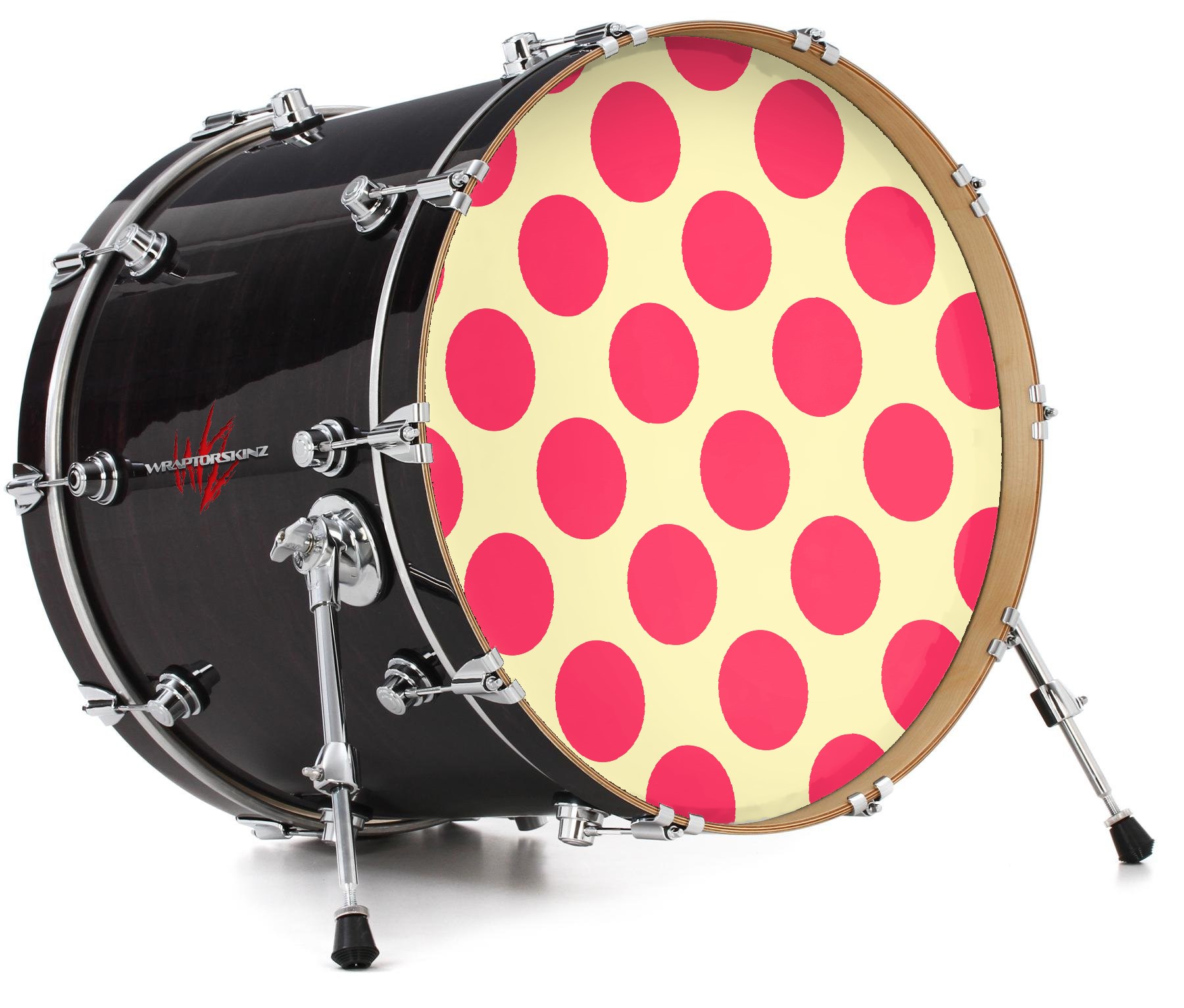 Decal Skin works with most 26" Bass Kick Drum Heads Kearas Polka Dots Pink On Cream - DRUM HEAD NOT INCLUDED