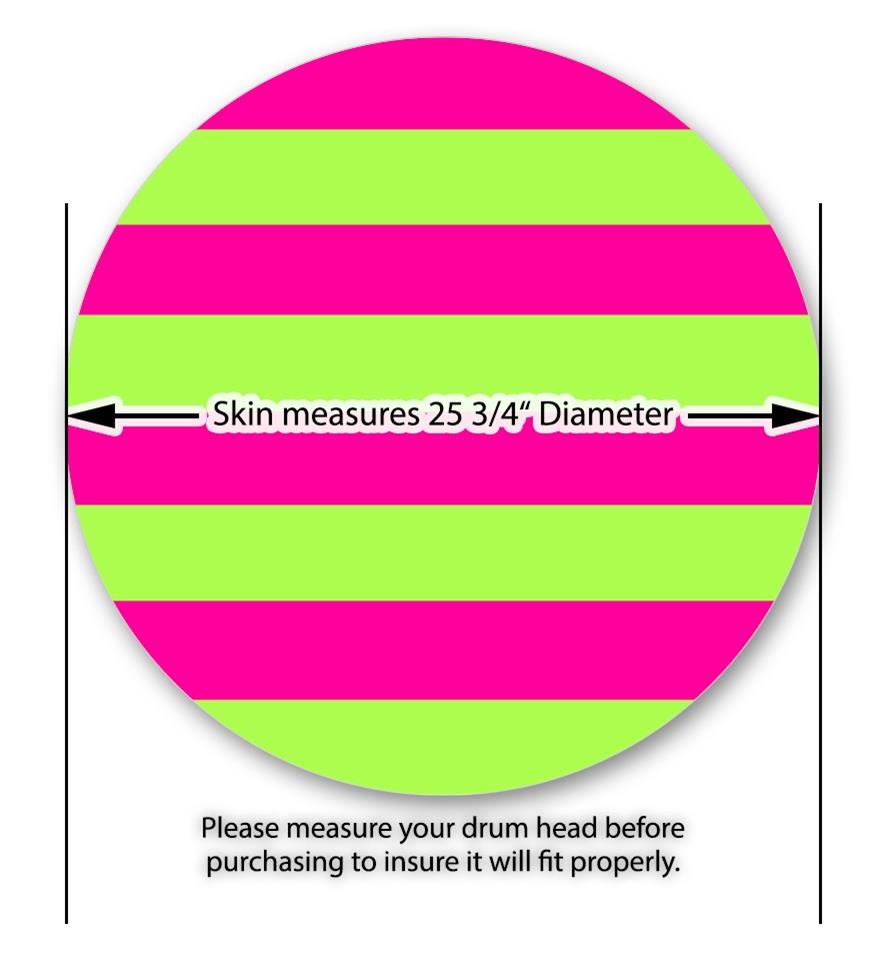 Decal Skin works with most 26" Bass Kick Drum Heads Psycho Stripes Neon Green and Hot Pink - DRUM HEAD NOT INCLUDED