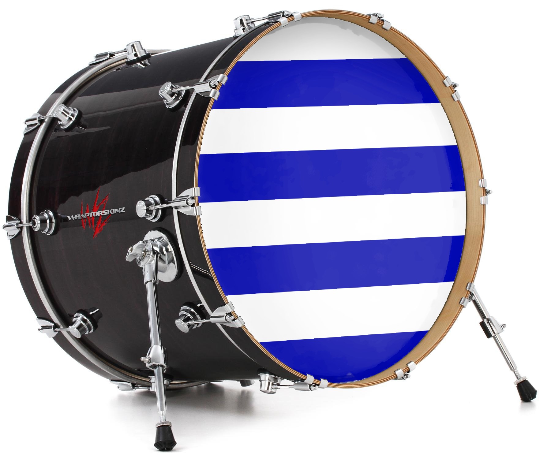 Decal Skin works with most 26" Bass Kick Drum Heads Psycho Stripes Blue and White - DRUM HEAD NOT INCLUDED