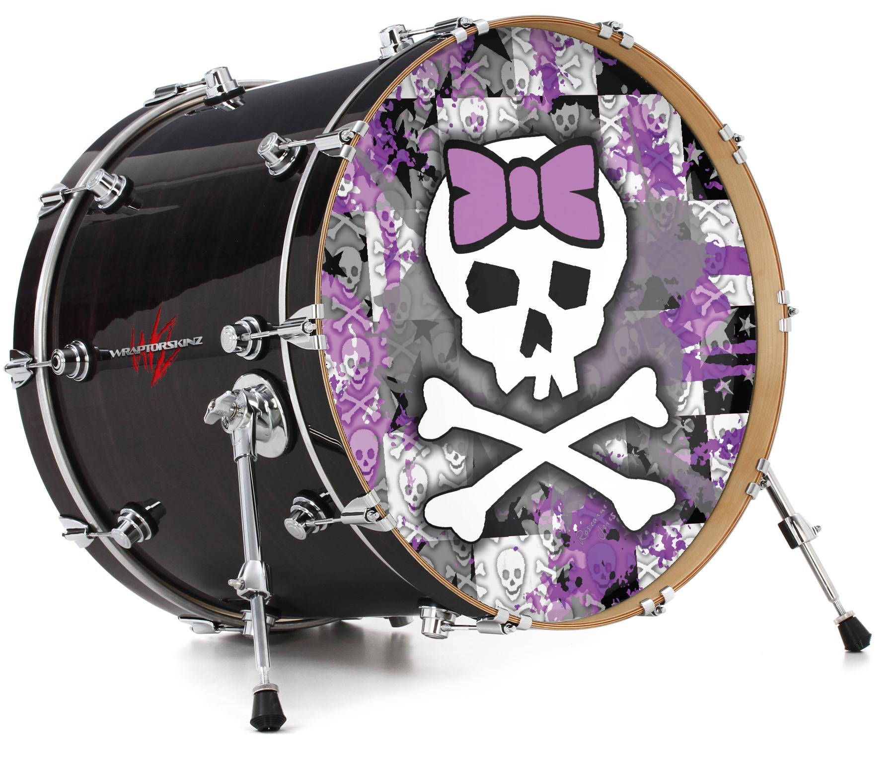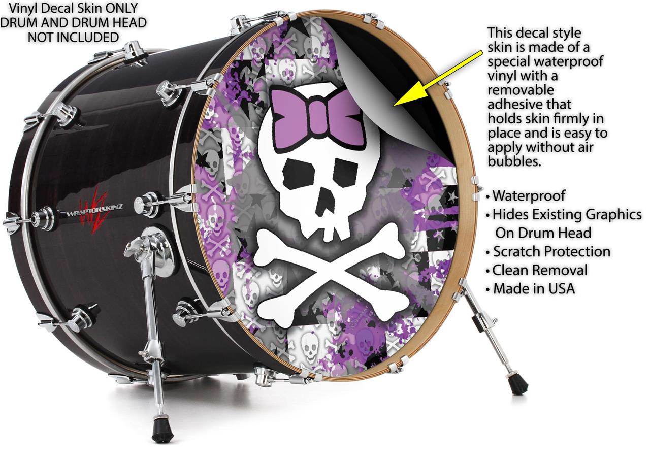 Decal Skin works with most 26" Bass Kick Drum Heads Princess Skull Purple - DRUM HEAD NOT INCLUDED
