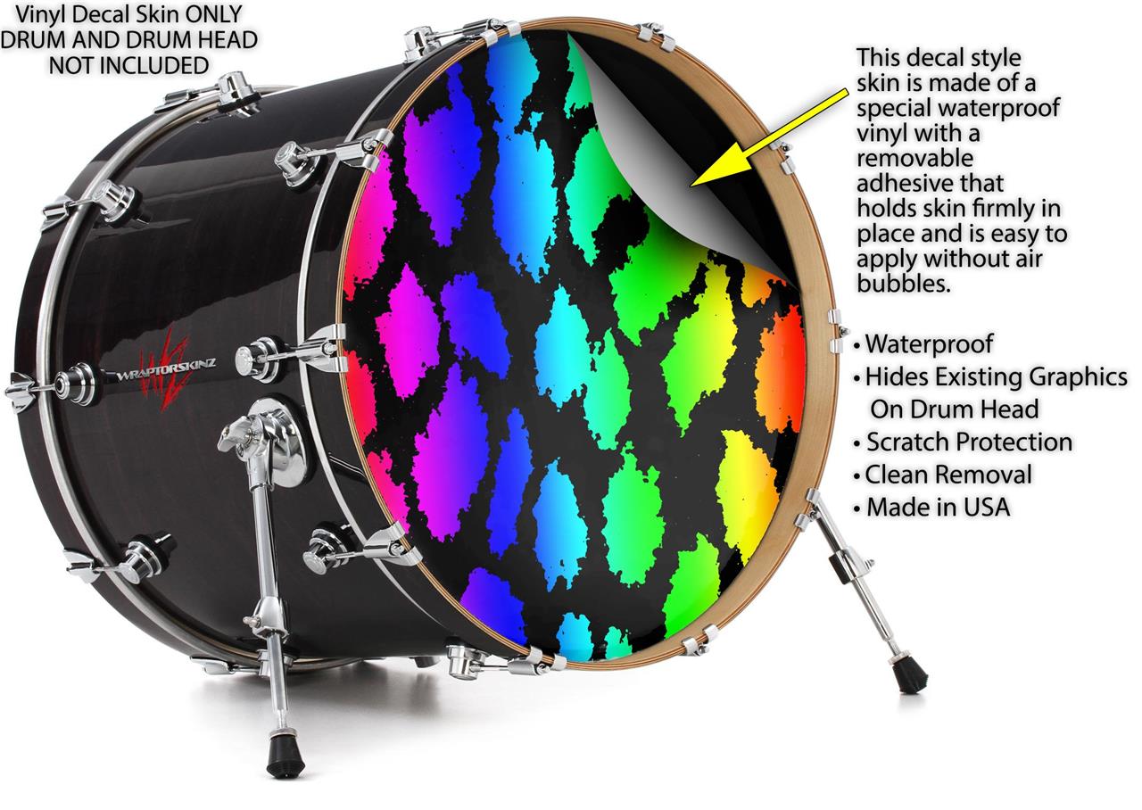 Decal Skin works with most 26" Bass Kick Drum Heads Rainbow Leopard - DRUM HEAD NOT INCLUDED