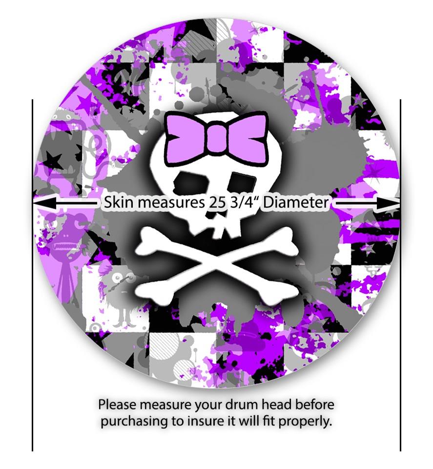 Decal Skin works with most 26" Bass Kick Drum Heads Purple Princess Skull - DRUM HEAD NOT INCLUDED
