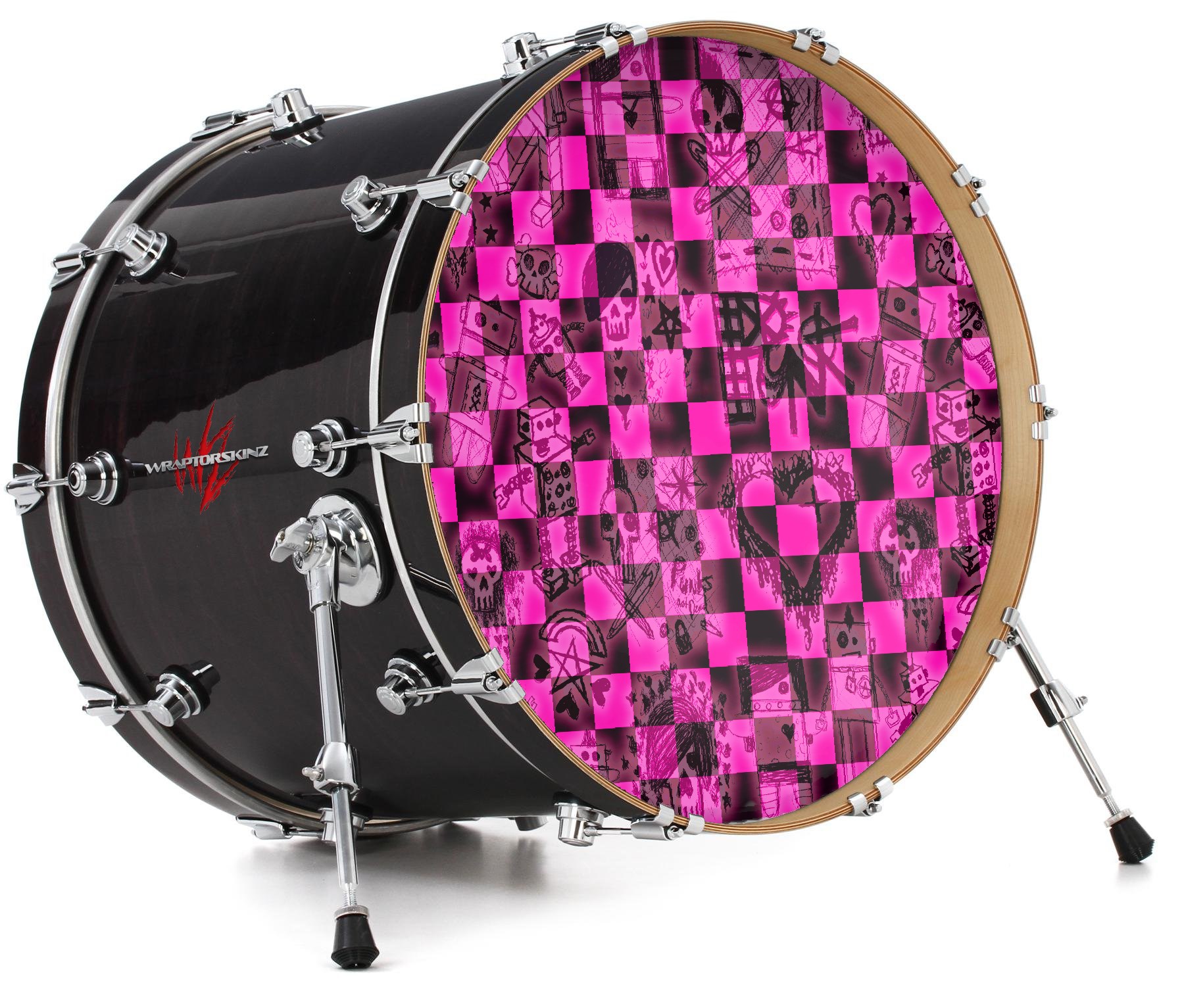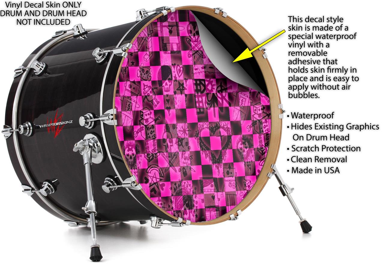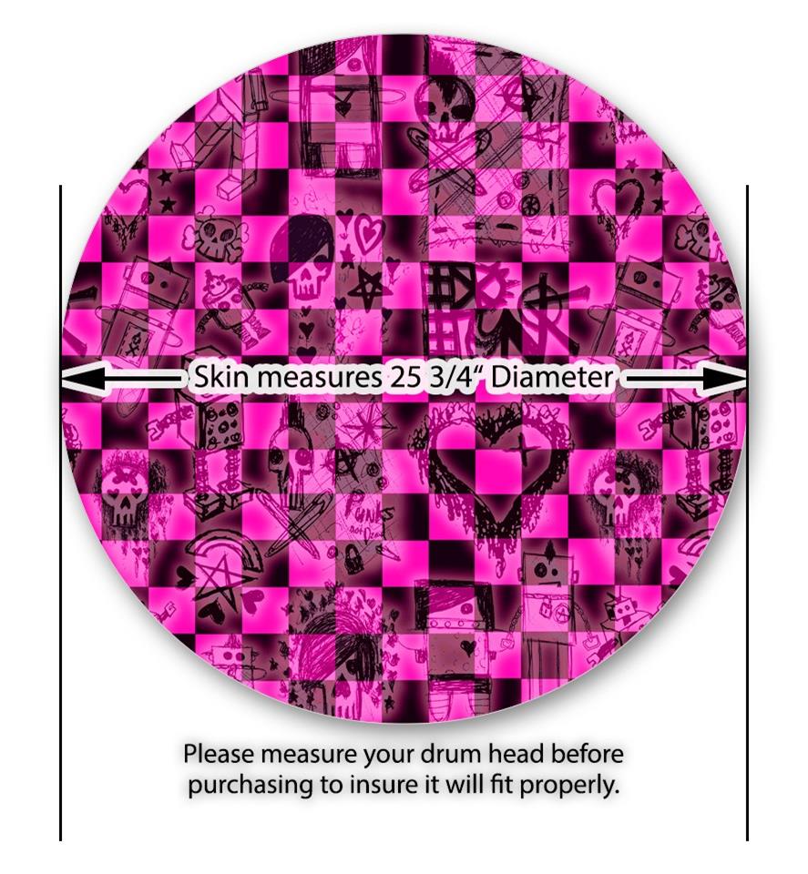 Decal Skin works with most 26" Bass Kick Drum Heads Pink Checkerboard Sketches - DRUM HEAD NOT INCLUDED
