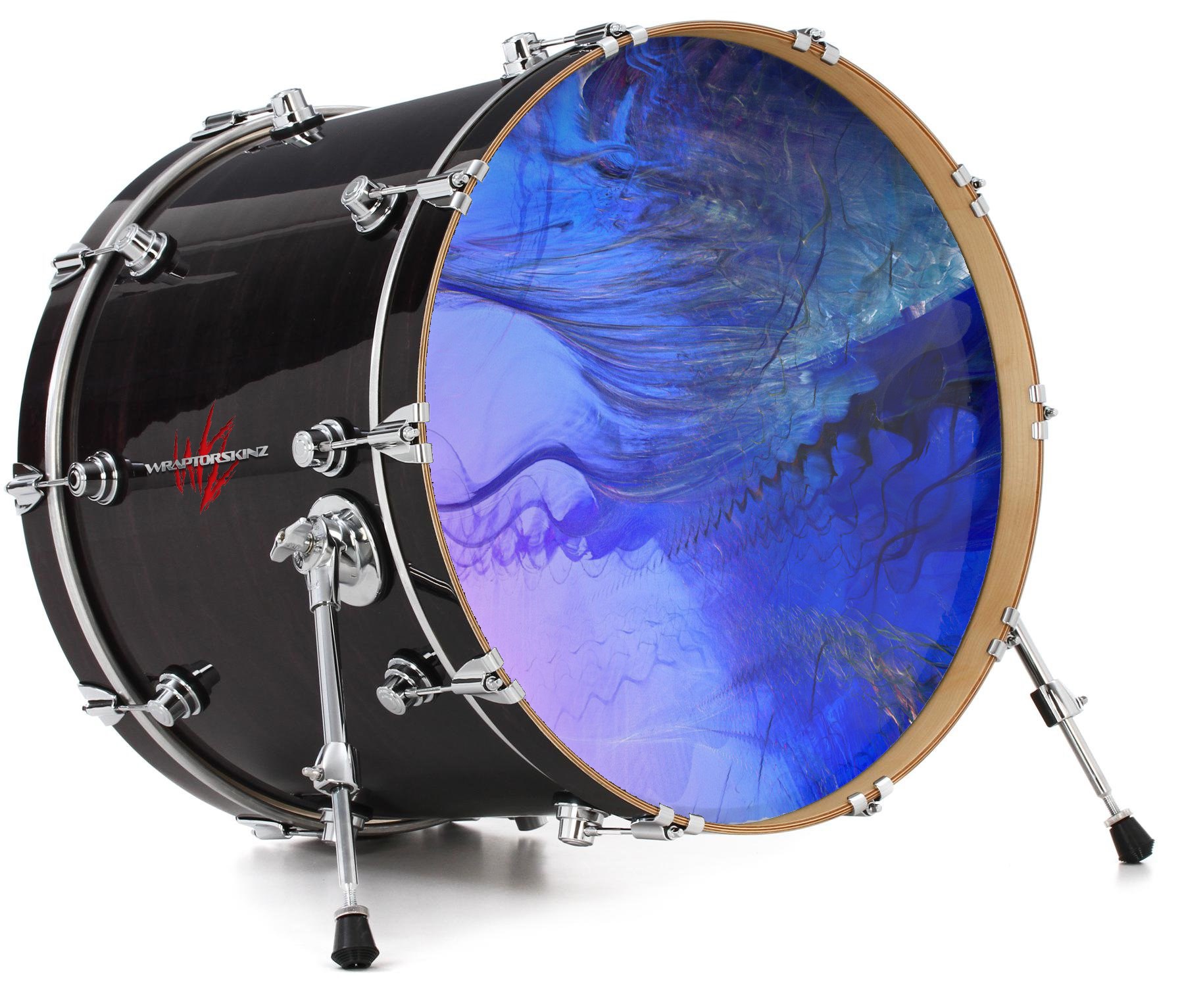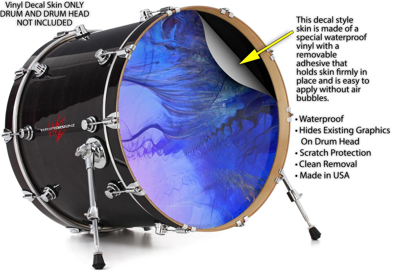 This design also available in other sizes. WraptorSkinz® skin wraps compatible with most kick drum heads. Printed using superb photo quality designs and vibrant colors printed with special fade resistant inks that last even in direct sun for years. WraptorSkinz are a composite three layer commercial grade materials vinyl. The bottom layer is a air release, grey block out removable adhesive that hides existing graphics on the drum head and is easily applied without air bubbles. The middle layer is a flexible vinyl printed with UV protected, fade resistant inks that deliver superb photo quality designs in vibrant colors. Finally, we bond a professional grade laminate over the entire skin adding a glossy protective finish.