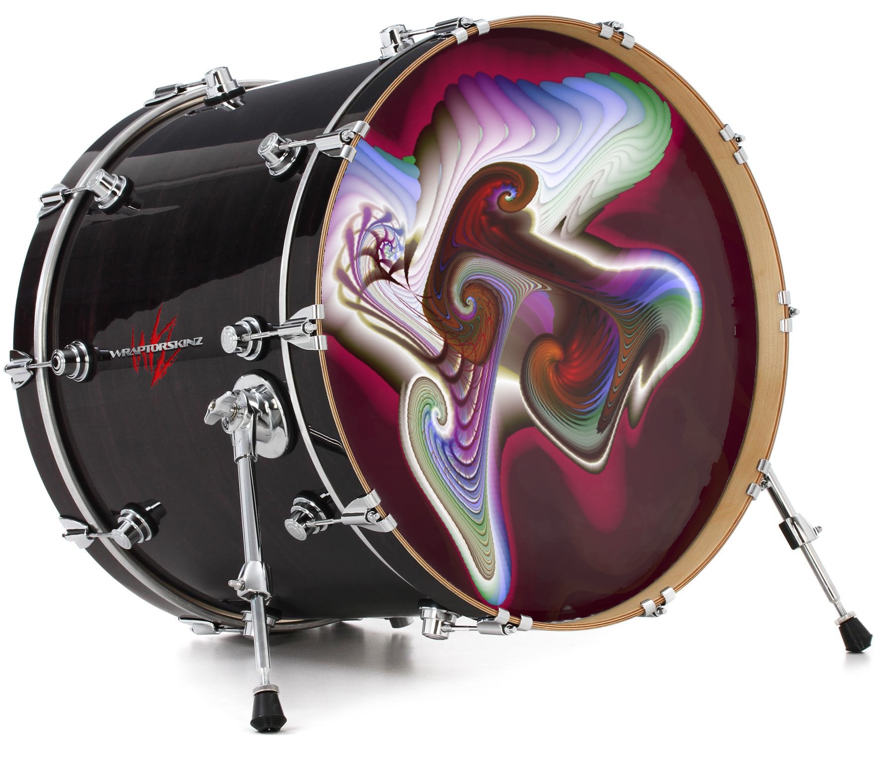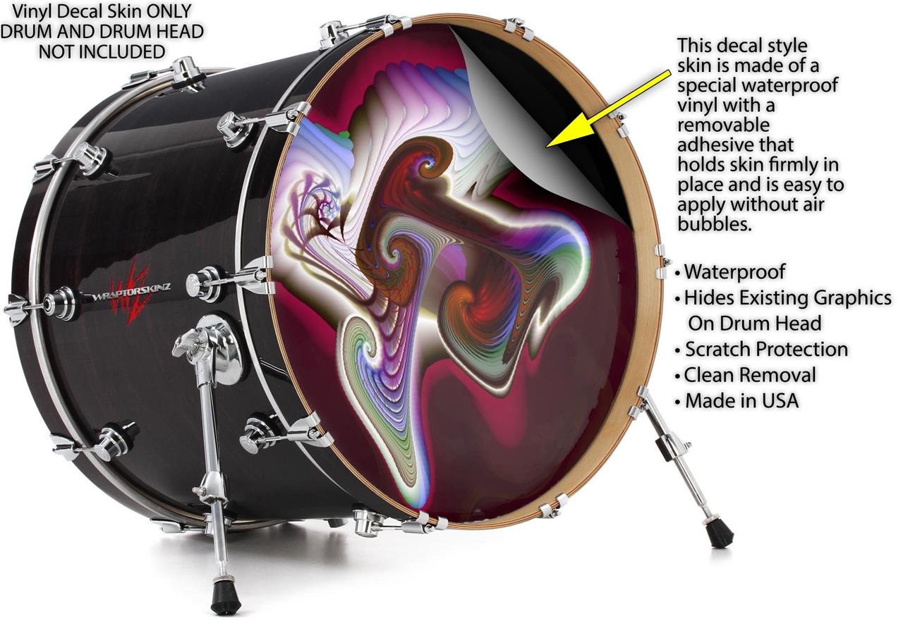 This design also available in other sizes. WraptorSkinz® skin wraps compatible with most kick drum heads. Printed using superb photo quality designs and vibrant colors printed with special fade resistant inks that last even in direct sun for years. WraptorSkinz are a composite three layer commercial grade materials vinyl. The bottom layer is a air release, grey block out removable adhesive that hides existing graphics on the drum head and is easily applied without air bubbles. The middle layer is a flexible vinyl printed with UV protected, fade resistant inks that deliver superb photo quality designs in vibrant colors. Finally, we bond a professional grade laminate over the entire skin adding a glossy protective finish.
