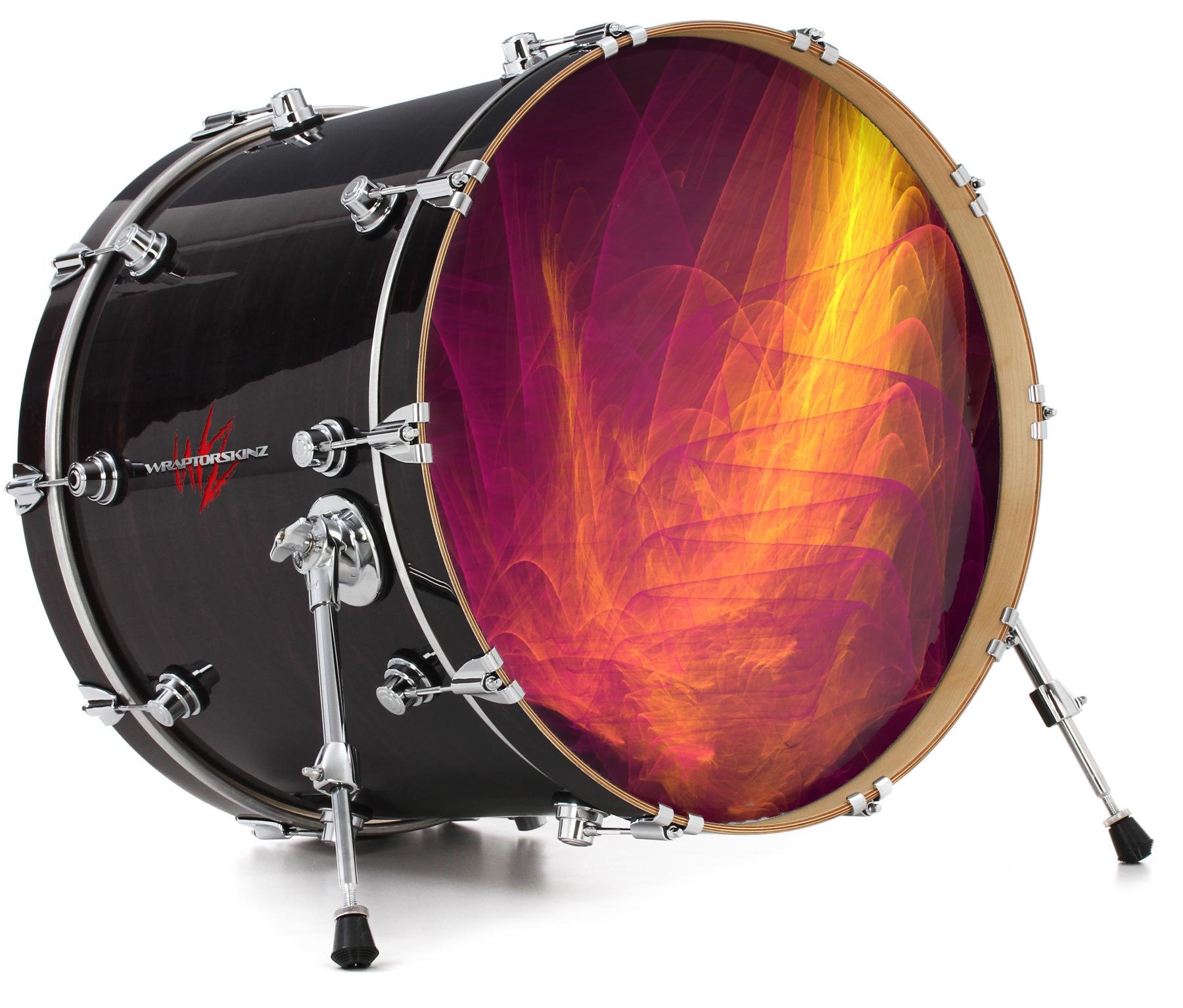 This design also available in other sizes. WraptorSkinz® skin wraps compatible with most kick drum heads. Printed using superb photo quality designs and vibrant colors printed with special fade resistant inks that last even in direct sun for years. WraptorSkinz are a composite three layer commercial grade materials vinyl. The bottom layer is a air release, grey block out removable adhesive that hides existing graphics on the drum head and is easily applied without air bubbles. The middle layer is a flexible vinyl printed with UV protected, fade resistant inks that deliver superb photo quality designs in vibrant colors. Finally, we bond a professional grade laminate over the entire skin adding a glossy protective finish.