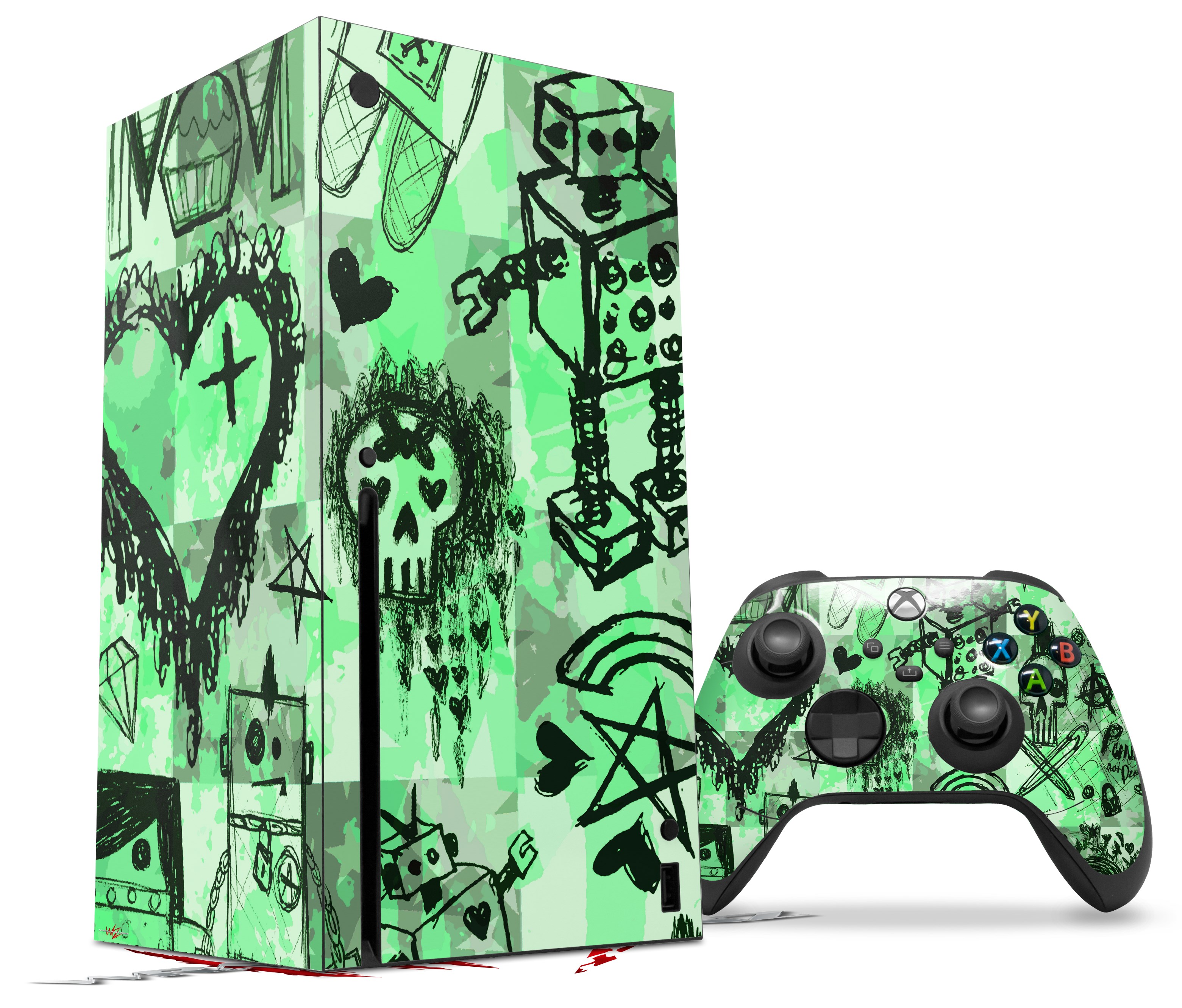 WraptorSkinz Skin Wrap compatible with the 2020 XBOX Series X Console and Controller Scene Kid Sketches Green (XBOX NOT INCLUDED)