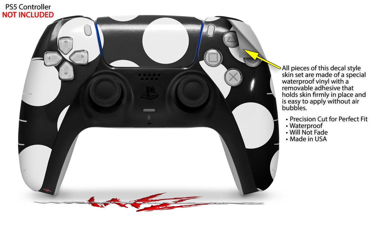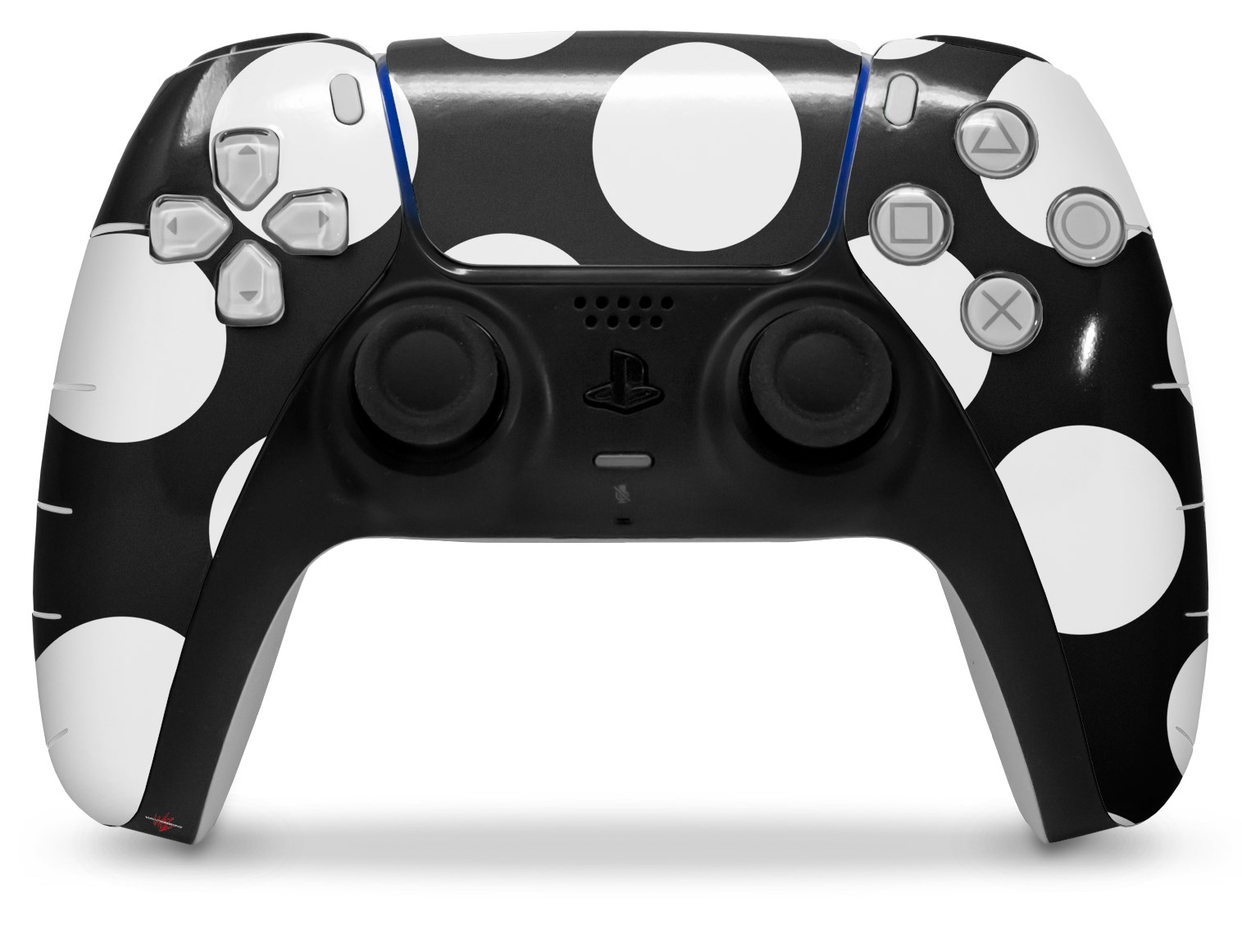 WraptorSkinz Skin Wrap compatible with the Sony PS5 DualSense Controller Kearas Polka Dots White On Black (CONTROLLER NOT INCLUDED)
