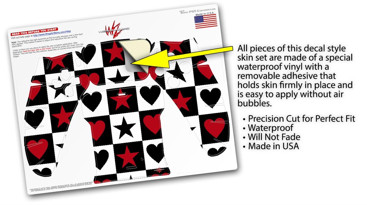 WraptorSkinz Skin Wrap compatible with the Sony PS5 DualSense Controller Hearts and Stars Red (CONTROLLER NOT INCLUDED)