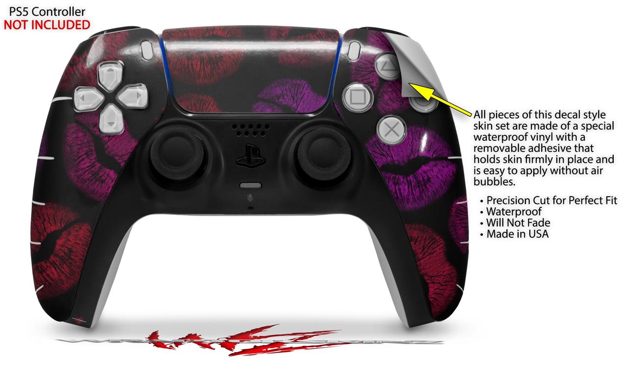 WraptorSkinz Skin Wrap compatible with the Sony PS5 DualSense Controller Red Pink And Black Lips (CONTROLLER NOT INCLUDED)