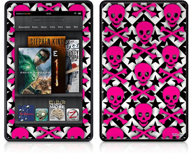 Amazon Kindle Fire (Original) Decal Style Skin - Pink Skulls and Stars