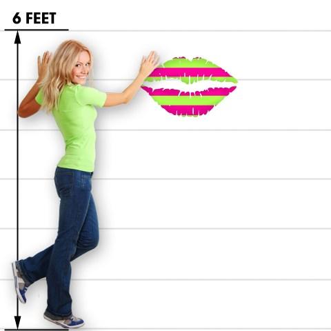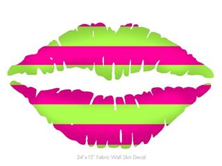 Psycho Stripes Neon Green and Hot Pink - Kissing Lips Fabric Wall Skin Decal measures 24x15 inches