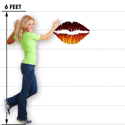 Fire Flames on Black - Kissing Lips Fabric Wall Skin Decal measures 24x15 inches
