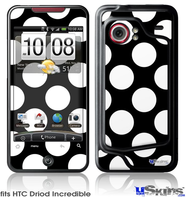 HTC Droid Incredible Skin - Kearas Polka Dots White On Black