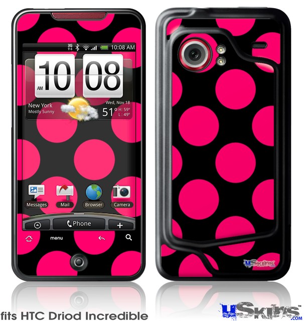 HTC Droid Incredible Skin - Kearas Polka Dots Pink On Black