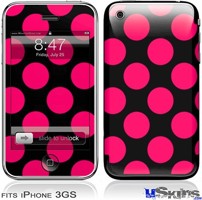 iPhone 3GS Skin - Kearas Polka Dots Pink On Black