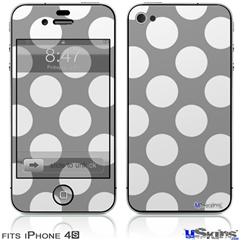 iPhone 4S Decal Style Vinyl Skin - Kearas Polka Dots Whtie On Gray