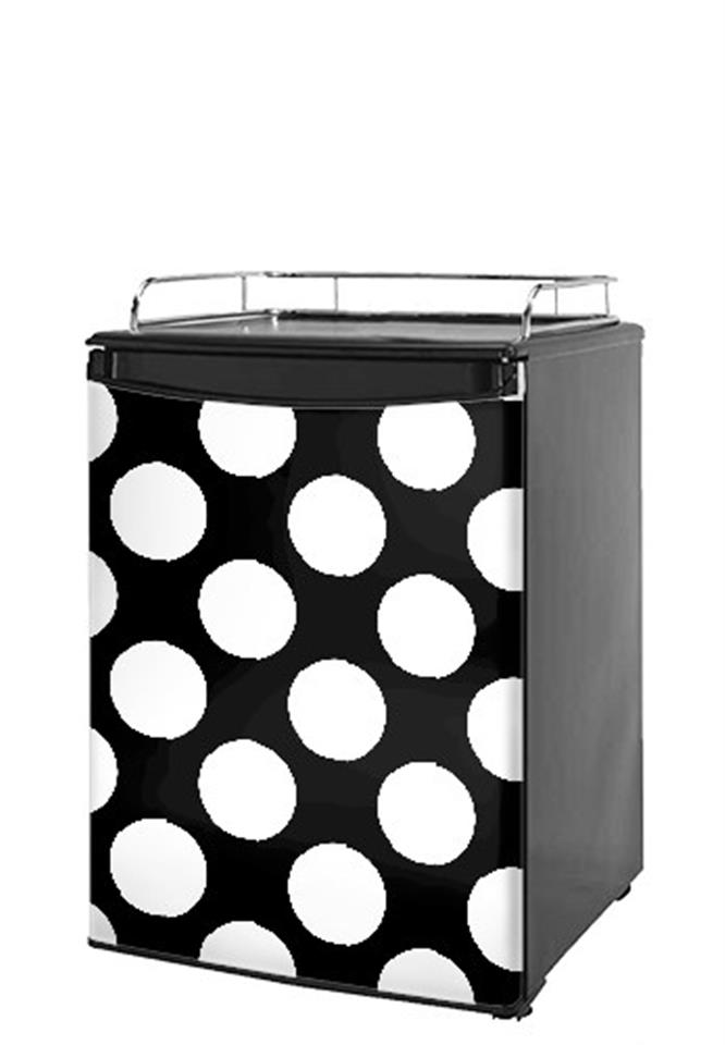 Kegerator Skin - Kearas Polka Dots White On Black (fits medium sized dorm fridge and kegerators)