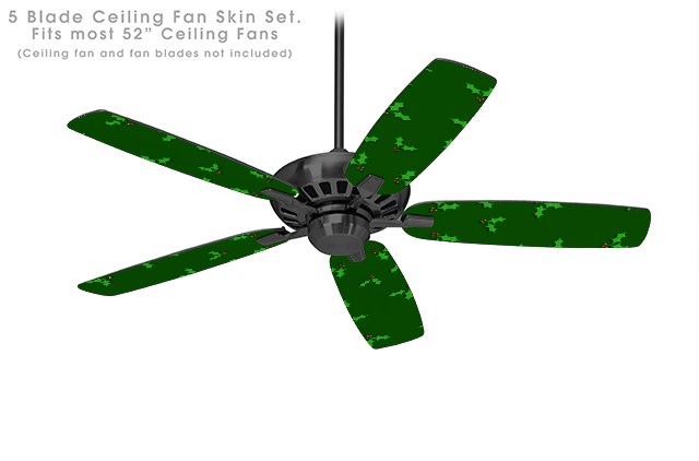 Holly Leaves on Green - Ceiling Fan Skin Kit fits most 52 inch fans (FAN and BLADES SOLD SEPARATELY)
