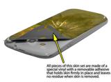 uSkins™ are self adhering vinyl skins that help prevent scratches and look great doing it. Unlike bulky silicon, plastic or metal cases and faceplates, uSkins are designed to be thin and very tough. uSkins are a composite of two layers of commercial grade materials. The bottom layer is a soft, flexible vinyl with a special removable adhesive that is easily positioned, applied without air bubbles, and effortlessly removed without leaving a sticky residue. Next we print the bottom layer with UV protected, fade resistant inks that deliver superb photo quality designs in vibrant colors. Finally we bond a professional grade laminate over the entire skin adding a glossy protective finish.