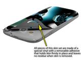 uSkins™ are self adhering vinyl skins that help prevent scratches and look great doing it. Unlike bulky silicon, plastic or metal cases and faceplates, uSkins are designed to be thin and very tough. uSkins are a composite of two layers of commercial grade materials. The bottom layer is a soft, flexible vinyl with a special removable adhesive that is easily positioned, applied without air bubbles, and effortlessly removed without leaving a sticky residue. Next we print the bottom layer with UV protected, fade resistant inks that deliver superb photo quality designs in vibrant colors. Finally we bond a professional grade laminate over the entire skin adding a glossy protective finish.