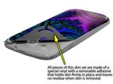 uSkins™ are self adhering vinyl skins that help prevent scratches and look great doing it. Unlike bulky silicon, plastic or metal cases and faceplates, uSkins are designed to be thin and very tough. uSkins are a composite of two layers of commercial grade materials. The bottom layer is a soft, flexible vinyl with a special removable adhesive that is easily positioned, applied without air bubbles, and effortlessly removed without leaving a sticky residue. Next we print the bottom layer with UV protected, fade resistant inks that deliver superb photo quality designs in vibrant colors. Finally we bond a professional grade laminate over the entire skin adding a glossy protective finish.