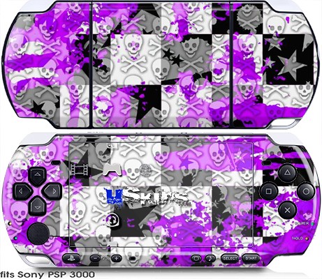 Sony PSP 3000 Skin - Purple Checker Skull Splatter