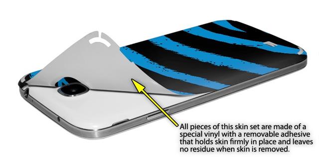 • Decal style vinyl skin covers front and back of Samsung Galaxy S4 phone.