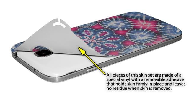 • Decal style vinyl skin covers front and back of Samsung Galaxy S4 phone.