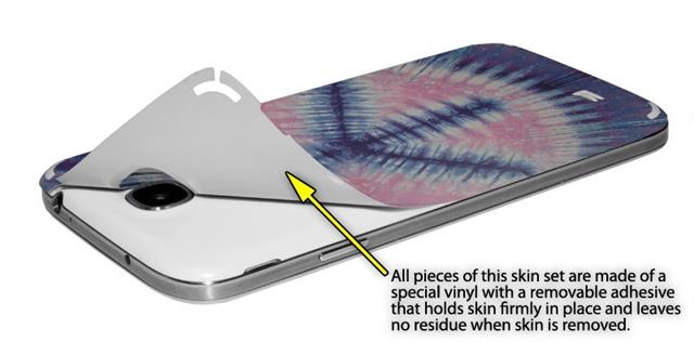 • Decal style vinyl skin covers front and back of Samsung Galaxy S4 phone.