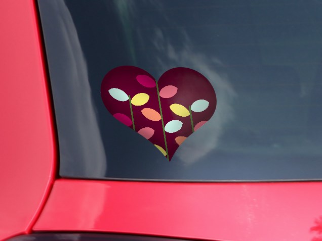 Plain Leaves On Burgundy - I Heart Love Car Window Decal 6.5 x 5.5 inches
