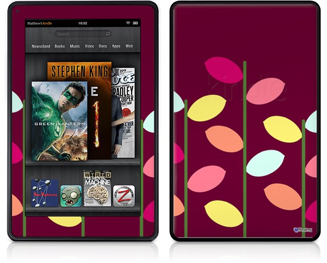 Amazon Kindle Fire (Original) Decal Style Skin - Plain Leaves On Burgundy
