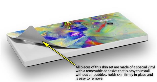 uSkins™ are self adhering vinyl skins that help prevent scratches and look great doing it. Unlike bulky silicon, plastic or metal cases and faceplates, uSkins are designed to be thin and very tough. uSkins are a composite of two layers of commercial grade materials. The bottom layer is a soft, flexible vinyl with a special removable adhesive that is easily positioned, applied without air bubbles, and effortlessly removed without leaving a sticky residue. Next we print the bottom layer with UV protected, fade resistant inks that deliver superb photo quality designs in vibrant colors. Finally we bond a professional grade laminate over the entire skin adding a glossy protective finish.