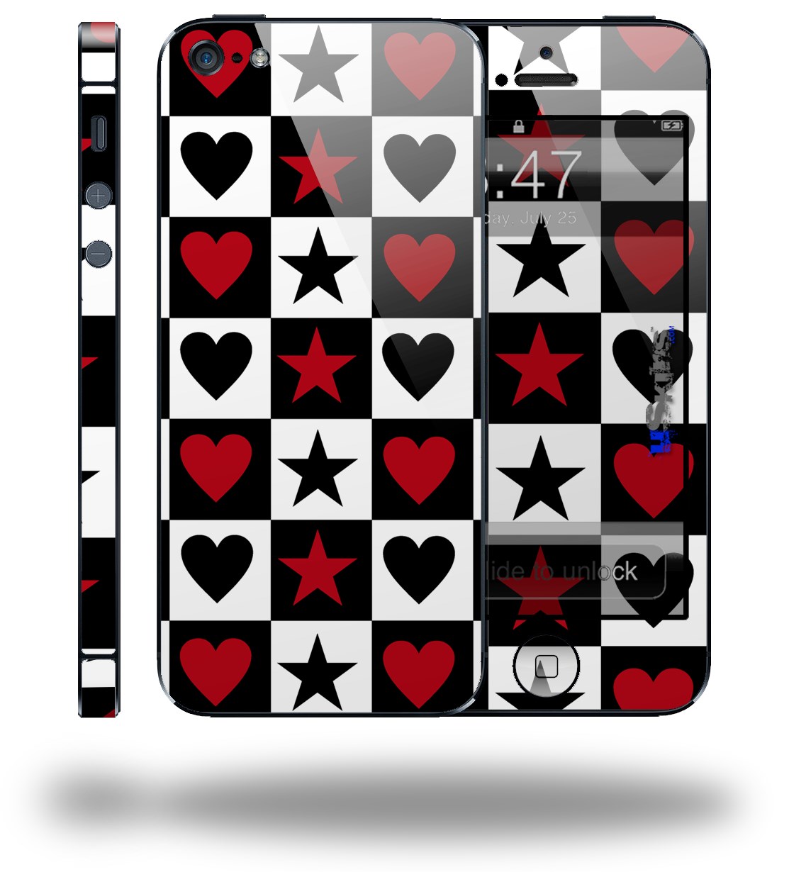 Hearts and Stars Red - Decal Style Vinyl Skin (fits Apple Original iPhone 5, NOT the iPhone 5C or 5S)