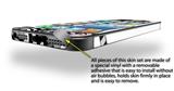 uSkins™ are self adhering vinyl skins that help prevent scratches and look great doing it. Unlike bulky silicon, plastic or metal cases and faceplates, uSkins are designed to be thin and very tough. uSkins are a composite of two layers of commercial grade materials. The bottom layer is a soft, flexible vinyl with a special removable adhesive that is easily positioned, applied without air bubbles, and effortlessly removed without leaving a sticky residue. Next we print the bottom layer with UV protected, fade resistant inks that deliver superb photo quality designs in vibrant colors. Finally we bond a professional grade laminate over the entire skin adding a glossy protective finish.