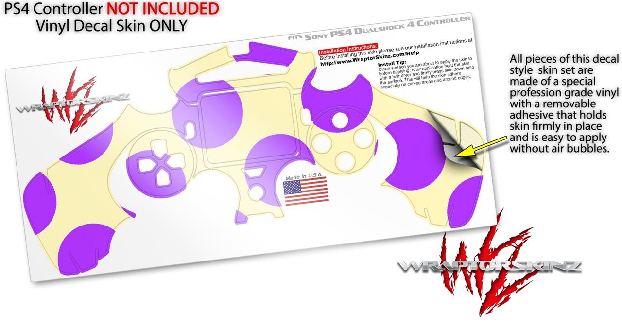WraptorSkinz Skin compatible with Sony PS4 Dualshock Controller PlayStation 4 Original Slim and Pro Kearas Polka Dots Purple On Cream (CONTROLLER NOT INCLUDED)