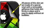 uSkins™ are self adhering vinyl decal style skins and are a great way to add a new look to your protective case. uSkins are a composite of two layers of commercial grade materials. The bottom layer is a soft, flexible vinyl with a special removable adhesive that is easily positioned, applied without air bubbles. Next we print the bottom layer with UV protected, fade resistant inks that deliver superb photo quality designs in vibrant colors. Finally we bond a professional grade laminate over the entire skin adding a glossy protective finish.