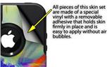 uSkins™ are self adhering vinyl decal style skins and are a great way to add a new look to your protective case. uSkins are a composite of two layers of commercial grade materials. The bottom layer is a soft, flexible vinyl with a special removable adhesive that is easily positioned, applied without air bubbles. Next we print the bottom layer with UV protected, fade resistant inks that deliver superb photo quality designs in vibrant colors. Finally we bond a professional grade laminate over the entire skin adding a glossy protective finish.