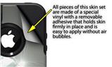 uSkins™ are self adhering vinyl decal style skins and are a great way to add a new look to your protective case. uSkins are a composite of two layers of commercial grade materials. The bottom layer is a soft, flexible vinyl with a special removable adhesive that is easily positioned, applied without air bubbles. Next we print the bottom layer with UV protected, fade resistant inks that deliver superb photo quality designs in vibrant colors. Finally we bond a professional grade laminate over the entire skin adding a glossy protective finish.