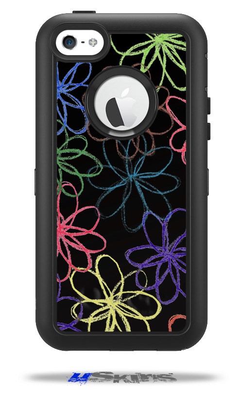Kearas Flowers on Black - Decal Style Vinyl Skin fits Otterbox Defender iPhone 5C Case (CASE SOLD SEPARATELY)