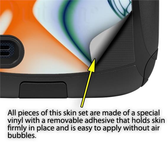 uSkins™ are self adhering vinyl decal style skins and are a great way to add a new look to your protective case. uSkins are a composite of two layers of commercial grade materials. The bottom layer is a soft, flexible vinyl with a special removable adhesive that is easily positioned, applied without air bubbles. Next we print the bottom layer with UV protected, fade resistant inks that deliver superb photo quality designs in vibrant colors. Finally we bond a professional grade laminate over the entire skin adding a glossy protective finish.