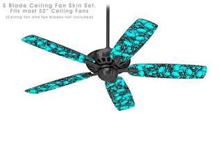 Scattered Skulls Neon Teal - Ceiling Fan Skin Kit fits most 52 inch fans (FAN and BLADES SOLD SEPARATELY)