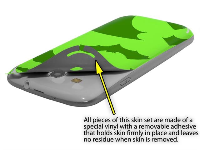 uSkins™ are self adhering vinyl skins that help prevent scratches and look great doing it. Unlike bulky silicon, plastic or metal cases and faceplates, uSkins are designed to be thin and very tough. uSkins are a composite of two layers of commercial grade materials. The bottom layer is a soft, flexible vinyl with a special removable adhesive that is easily positioned, applied without air bubbles, and effortlessly removed without leaving a sticky residue. Next we print the bottom layer with UV protected, fade resistant inks that deliver superb photo quality designs in vibrant colors. Finally we bond a professional grade laminate over the entire skin adding a glossy protective finish.
