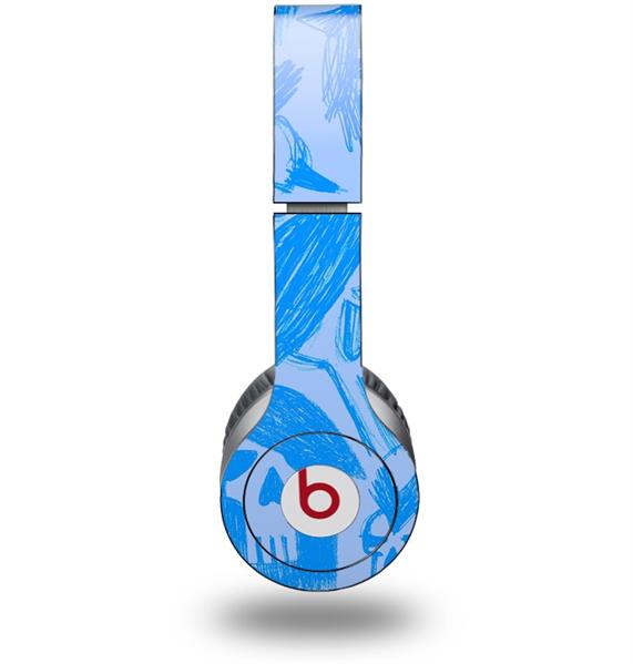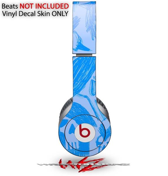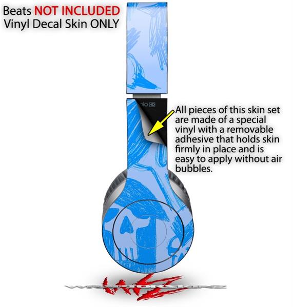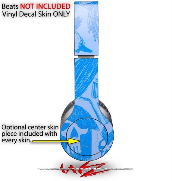 WraptorSkinz Skin Decal Wrap compatible with Beats Solo HD (Original) Skull Sketches Blue (HEADPHONES NOT INCLUDED)