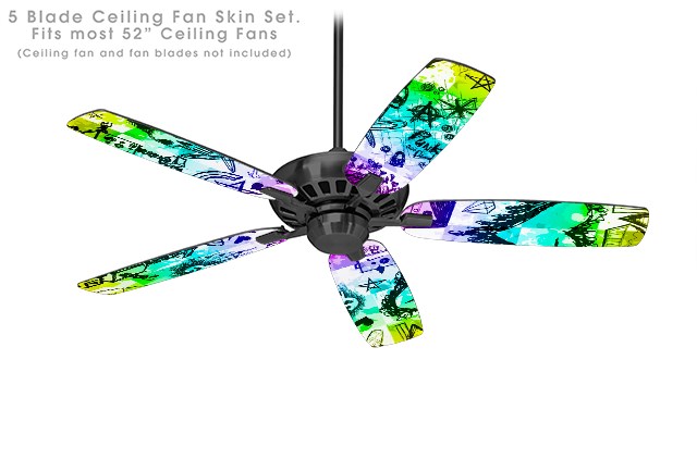 Scene Kid Sketches Rainbow - Ceiling Fan Skin Kit fits most 52 inch fans (FAN and BLADES SOLD SEPARATELY)